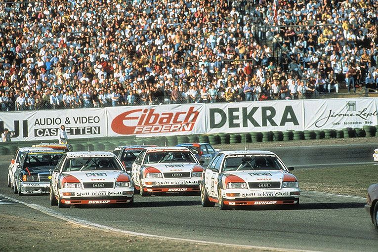 Audi, 1990 yılında Deutsche Tourenwagenmeisterschaft (DTM) touring otomobil şampiyonasına yer almaya başladı. Stuck, o yılki büyük ve güçlü V8 quattro ile sürücüler klasmanında zirvede yer aldı. Audi 1992'de yarışlardan çekildiğinde, 36 yarıştan 18'ini kazanmıştı. 1996 yılında, Audi A4 quattro Supertouring, iki litrelik dört silindirli motoru ile üç kıtada yedi ulusal şampiyonaya girdi ve hepsini kazandı. İki yıl sonra, Avrupa kuralları dört tekerlekten çekişin otomobil yarışlarında kullanılmasına büyük ölçüde yasak getirdi. Bu noktaya kadar quattro'nun başarı karnesi şu şekildeydi: Dünya Ralli Şampiyonası'nda dört zafer, Pikes Peak'te üç zafer, Trans-Am'da bir şampiyonluk galibiyeti, iki DTM zaferi, on bir ulusal touring otomobil şampiyonası ve bir Dünya Touring Otomobil Kupası.